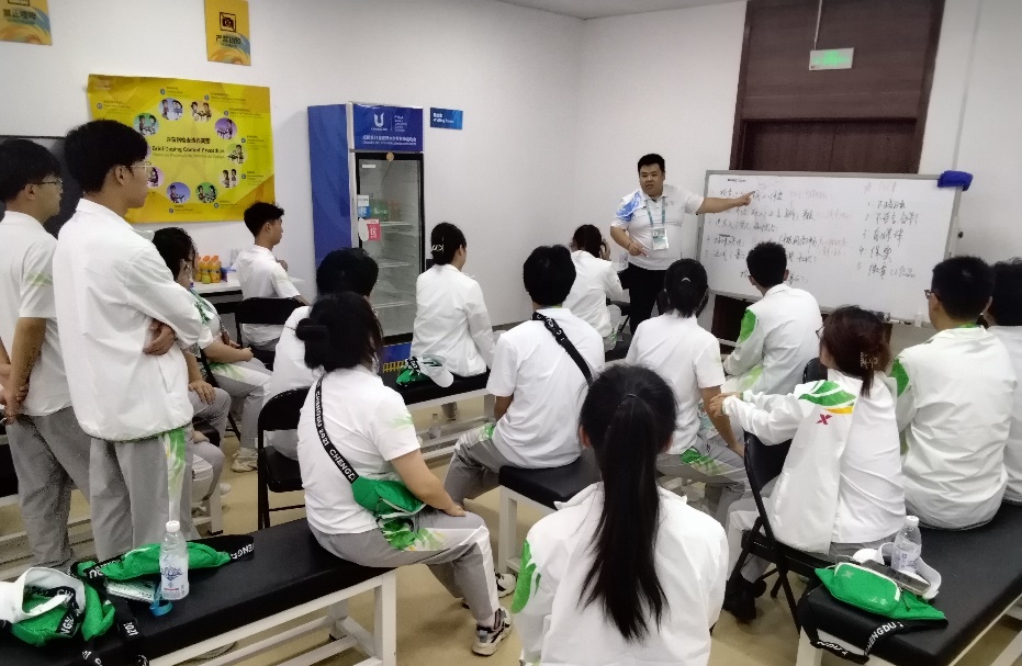 8月1日比赛正式打响,三位老师各司其职。侯金成和李贵春作为热身场地裁判员,积极与其他裁判员协同配合,组织来自世界各地的运动有序进行热身活动。热身场地是运动员开始比赛的“第一站”,裁判员与运动员、教练员接触最多,是向世界展示中国形象的重要窗口,裁判员要给各国教练员、运动员留下好的印象,确保运动员安全、为他们提供规范的比赛环境。