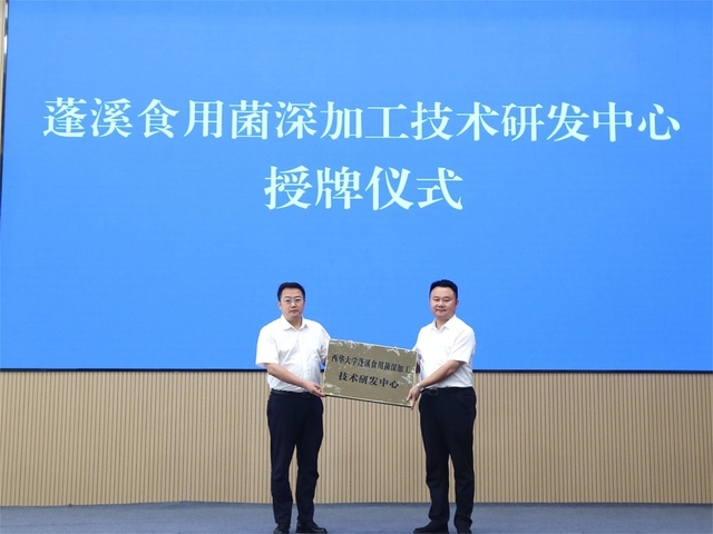 8月14日,校党委书记刘树根、副校长郎方年带队,携党委组织部、党委宣传部、科学技术与人文社科处、食品与生物工程学院负责人及相关人员前往遂宁市蓬溪县,开展校地合作调研,举行西华大学蓬溪食用菌深加工技术研发中心授牌仪式。