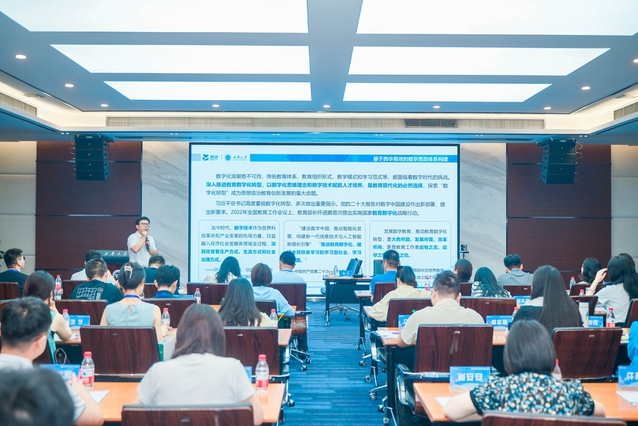 西华大学党委副书记张力以“基于西华易班的数字思政体系构建”为题作分享交流。他从教育数字化背景、搭建数字化平台、精准数字化管理、思政育人等角度深入介绍并现场演示了西华大学从理论研究和实践探索两个维度进行的“数字思政”探索,拓宽了“数字化精准思政”转型的思路。
