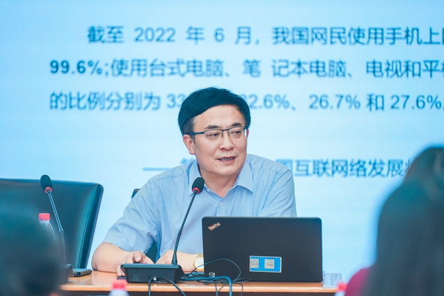 湖南师范大学学生工作部部长、湖南省高校网络思想政治工作中心秘书长向发意以“跬步至千里,风物放眼量——网络文化视域下高校思政工作创新路径”为题作分享。他结合目前学生网络思想政治教育面临的形势与任务,详细介绍了网络冲击带来的新变化、学生网络思想政治教育工作进入新阶段及学生网络思想政治教育工作面临的新任务。分享了湖南师范大学在开展网络文化建设中的探索、实践和成果等。