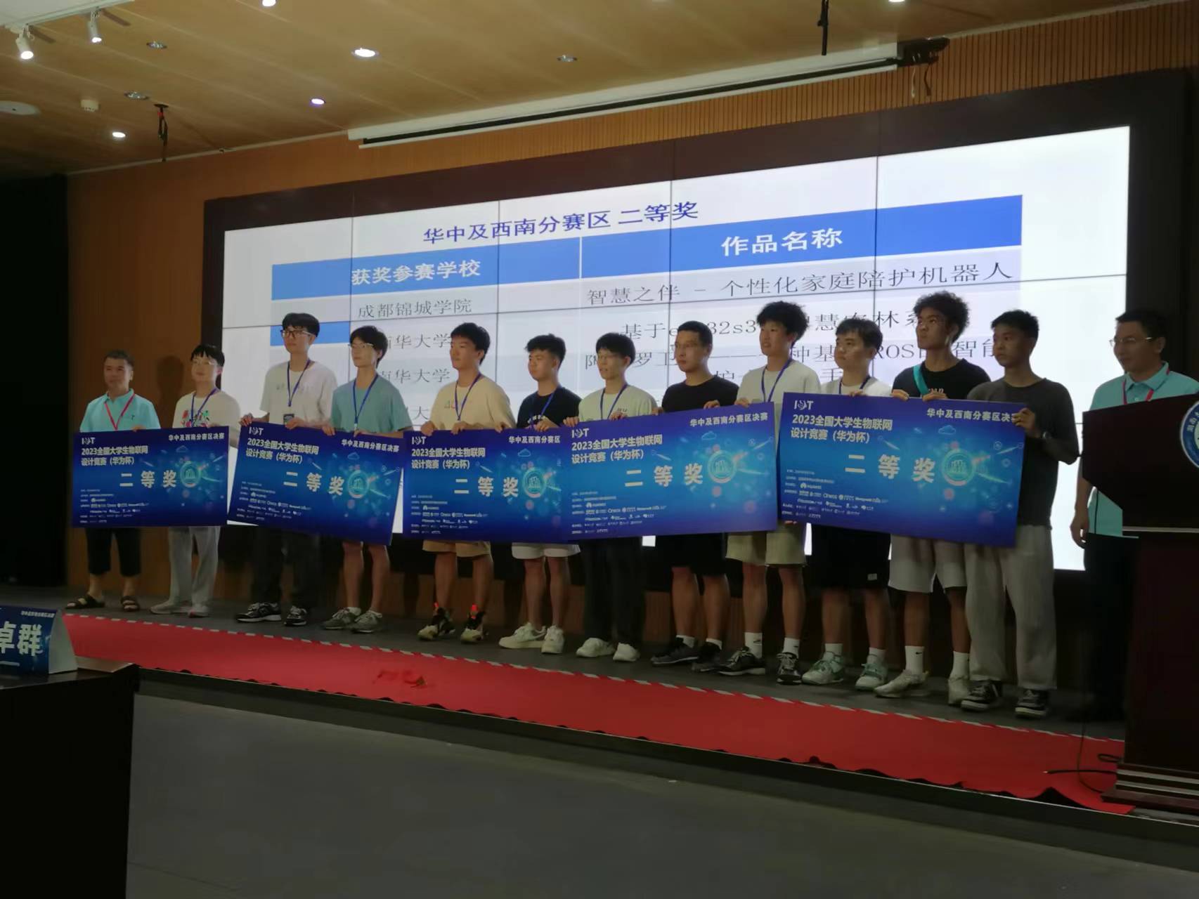 815日,2023全国大学生物联网设计竞赛(华为杯)华中及西南赛区比赛在湖南大学闭幕,我校计算机与软件工程学院物联网、智能科学与技术专业学生分成两个赛队参加了本次比赛,参赛项目分别是谭开文、董健、陈乐、周翼同学组的“智慧番茄农场”,以及许俊杰、郑华钰、李静波、苏永龙同学组的“基于esp32s3的智慧农林系统”。经过激烈的角逐,我校两支队伍荣获华中及西南赛区二等奖。
