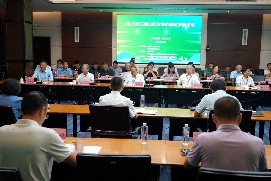 8月23日上午,2023年丘陵山区农业机械化发展论坛在西华大学郫都校区办公楼101会议室举行。中国工程院院士、华南农业大学罗锡文教授,中国工程院院士、石河子大学陈学庚教授,中国农业机械学会监事长、中国农业机械化科学研究院副院长、中国农业机械化科学研究院首席专家方宪法教授,农业农村部南京农业机械化研究所原党委书记胡志超研究员,中国农业机械学会农机化分会主任委员、中国农业大学中国农业机械化发展研究中心主任、中国农业大学杨敏丽教授,中国农业机械学会丘陵山区农林机械分会主任委员、重庆市农业科学院农业机械研究所庞有伦研究员,西华大学原党委书记、四川省乡村振兴促进会会长边慧敏教授,四川省农业农村厅相关处室负责人,西华大学党委副书记、校长李秋实,校党委副书记张力,副校长郎方年,受邀出席。参加中国农业工程学会2023年学术年会的部分代表,以及其他科研院所、高等院校、生产企业的领导与专家参加了本次论坛。杨敏丽教授主持论坛。