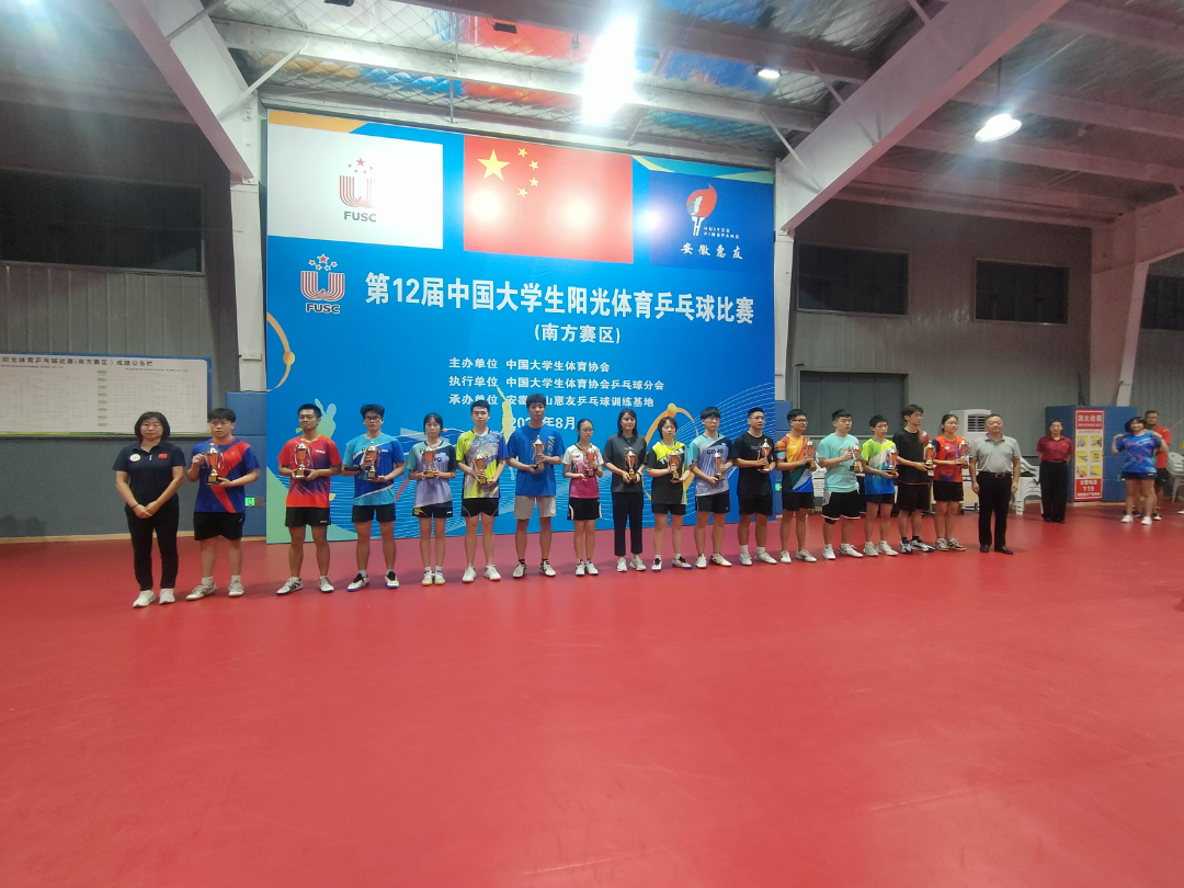 8月23日至25日,由中国大学生体育协会主办、中国大学生体育协会乒乓球协会执行、安徽黄山惠友乒乓球训练基地承办的2023年第12届中国大学生阳光体育乒乓球比赛在安徽黄山落下帷幕。来自复旦大学、南京大学、华中科技大学、武汉大学、中山大学、西华大学等32所高校的192名运动员参赛。