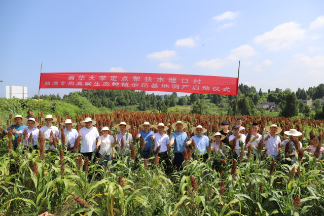 8月21日上午,西华大学定点帮扶水堰口村酿酒专用高粱生态种植示范基地测产仪式就在这片红彤彤的高粱地里举行。西华大学乡村振兴办副处长高华,食品与生物工程学院教授关统伟,西华大学驻水堰口村第一书记刁成豆、帮扶干部池炳良参加仪式。