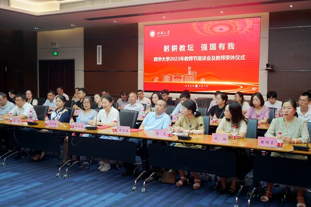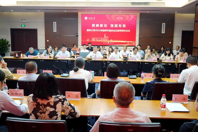 在第39个教师节来临之际,“躬耕教坛 强国有我”——西华大学庆祝第39个教师节教师座谈会于9月8日上午在郫都校区办公楼101会议室举行。校党委书记刘树根,校长李秋实,校党委副书记张力、副校长费凌与来自不同学科、不同学院的在职教师代表、退休教师代表座谈交流,倾听教师心声,共谋学校发展。副校长费凌主持会议。