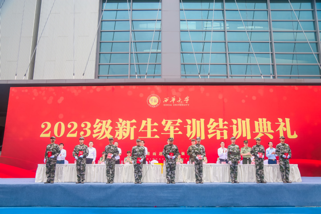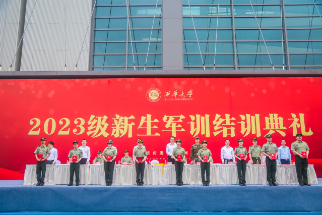 秋风习习,晨光熹微。为期14天的新生军训工作圆满结束,9月26日早晨,宜宾校区在科创中心运动场举行2023级学生军训结业典礼。出席本次典礼的领导和嘉宾分别是,武警宜宾支队大队长付乐少校,副校长许州、费凌,党政办、宣传部、学工部、教务处、后勤服务总公司、宜宾校区党工委负责人和各相关学院负责人,宜宾校区党工委常务副书记陆跃文主持典礼。