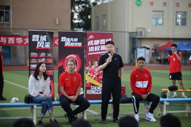 成都蓉城足球俱乐部是一支备受瞩目的足球队伍,他们以团结协作、拼搏进取的精神赢得了众多粉丝的喜爱。西华大学体育学院组建有足球高水平运动队、体育教育足球专项,专注于培养更多具有足球专业技能的学生。在交流会上,成都蓉城俱乐部姚夏详细介绍俱乐部基础设施和运动员训练硬件,现任成都蓉城梯队教练何杨进行了足球技术、战术及教学方法的讲解,中后卫球员理查德分享其比赛经验。