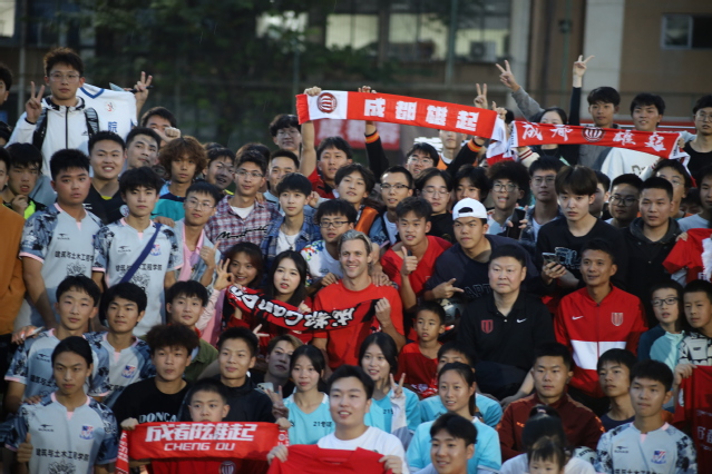 在交流过程中,我校学生积极参与各个环节互动,氛围轻松热烈。体育学院足球专业教练邓力说:“通过此次活动,让同学们认识到与职业球员的差距,在交流过程中学习足球竞技比赛的实战经验,能更好促进同学们加强学习、刻苦训练,进一步提高足球运动水平。同时,也可以更好促进校园足球氛围建设”。
