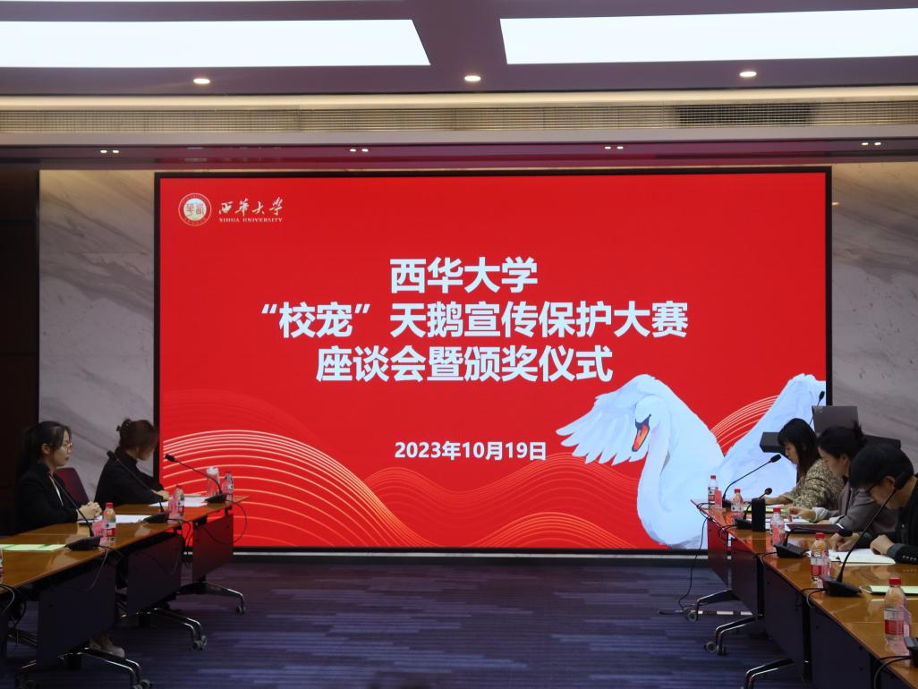10月19日下午,西华大学“校宠”天鹅宣传保护大赛座谈会暨颁奖仪式在办公楼101室举行。校关工委副主任魏成富,退休教师代表钟守荣,校内相关部门负责人及各学院教师、学生代表、大赛获奖代表、西华大学“校宠”工作团成员和“校宠”宣传保护工作爱好者参会。
