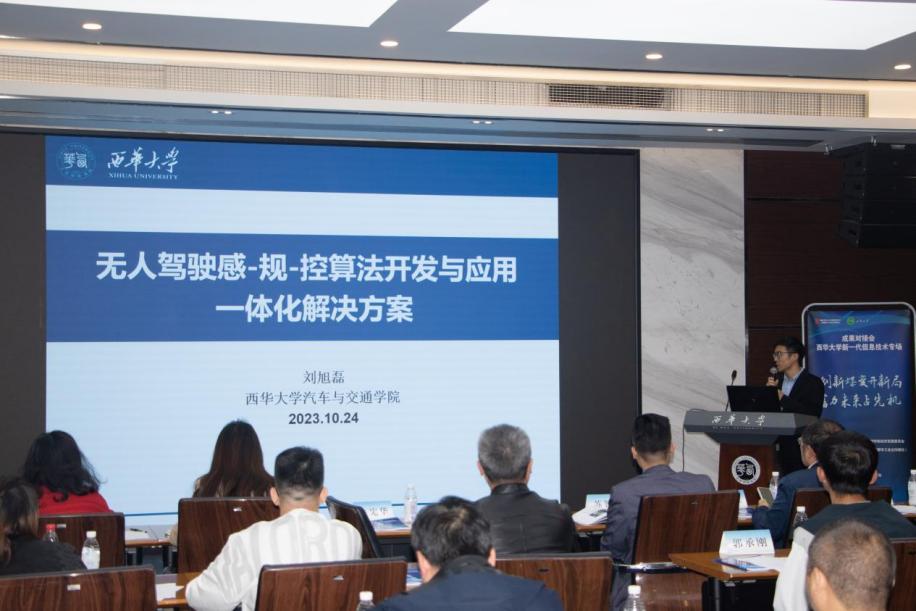 成果发布环节,共计收到新一代信息技术领域49项高水平科技成果,技术涵盖数据安全、物联网、云计算、人工智能、机器人、智能网联汽车等领域内容。来自西华大学计算机与软件工程学院、电气与电子信息学院、汽车与交通学院、机械工程学院的12支科研成果项目团队专家介绍了团队的成果。