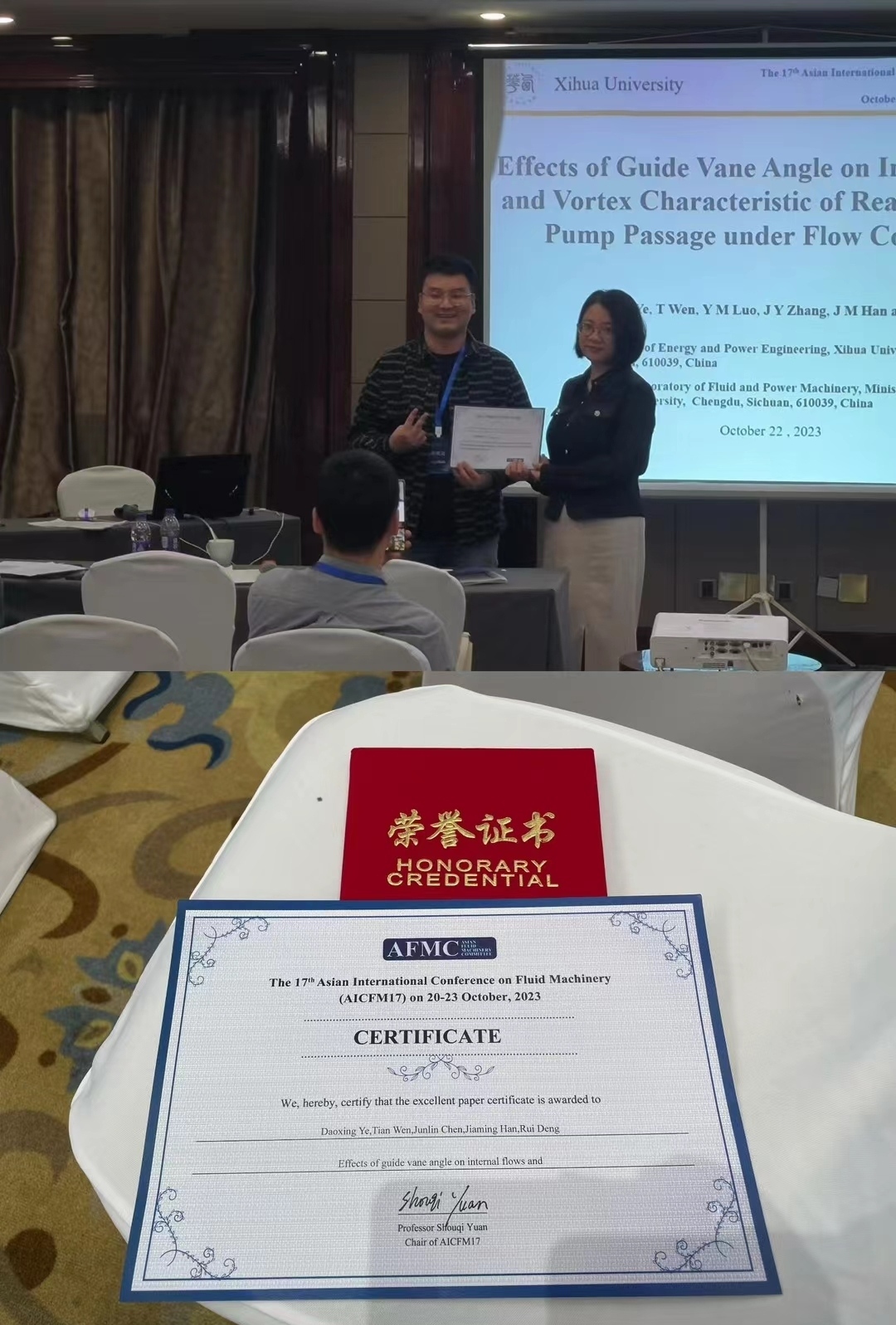 10月20日至23日,第17届亚洲流体机械国际会议(AICFM17)在江苏镇江召开,本次会议由亚洲流体机械委员会(AFMC)、中国工程热物理学会(CSET)主办,西华大学协办。作为亚洲最具影响力的流体机械国际会议,本次会议吸引了来自日本、韩国、新加坡、伊朗、马来西亚、德国、法国、中国等国家和地区的流体机械领域专家学者和研究人员共计500余人参加。我校能源与动力工程学院相关教师及研究生20余人参加了会议。
