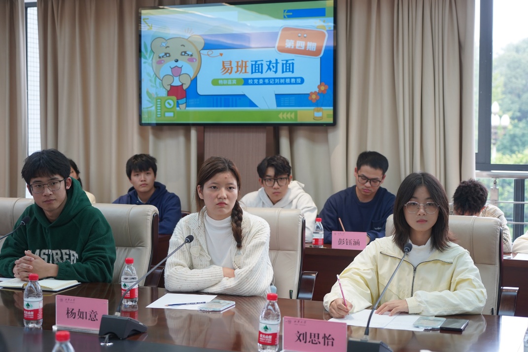 关于同学们关心的宿舍门禁问题,刘树根书记表示,“学校有相关管理和规定,要遵守规则,适应规则,学会合理安排时间,不仅是在学校,以后出社会了更要养成这样的习惯。”关于食堂饭菜、寝室卫浴和路段灯光等问题,刘书记及相关单位负责人积极回应,表示会尽快落实,能修缮的及时修缮,对于因客观因素不能立刻解决的问题,相关部门要实地调研,及时研究解决方案,不断完善学校基础设施。