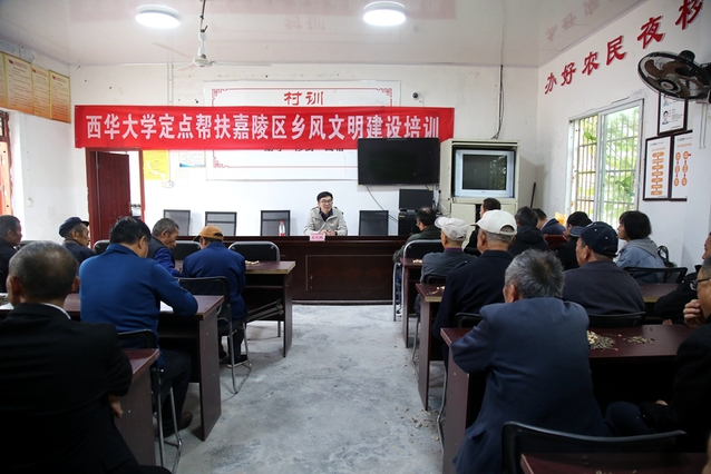 3日上午,工作组成员、马克思主义学院党委副书记石元鹏在下院山村党建会议室为两村五职干部、在村老党员作了题为“西华大学定点帮扶嘉陵区乡风文明建设培训暨党的创新理论精神宣讲” 专场报告。他以讲历史、讲故事、讲道理相结合的方式,重点就党的二十大报告精神、学习贯彻习近平新时代中国特色社会主义思想主题教育、乡村振兴等三个方面进行了宣讲,号召党员同志发挥带头作用,带头学好中央1号文件精神,带头深刻领会乡村振兴的政策和要求,组织带领广大村民迎难而上,共同富裕。