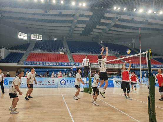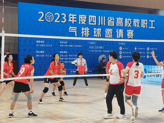 为进一步推进全民健身活动开展,提升教职工身体素质,展示教职工精神风貌,加强高校教职工之间的沟通交流,11月2日—4日,由四川省教科文卫工会指导、西南交通大学工会主办、西南交通大学教职工排球协会承办的“2023年度四川省高校教职工气排球邀请赛”在西南交通大学犀浦校区飞碟体育馆举行。来自全省9所高校的100余名运动员参加了此项赛事,四川省教科文卫工会副主席王俊兵出席开幕式并讲话,四川省排球协会李龙担任此次比赛的总裁判长。我校工会副主席蓝进担任领队,体育学院龚小明老师担任教练,学校教职工排球协会选派18名教职工运动员参加了此次比赛。