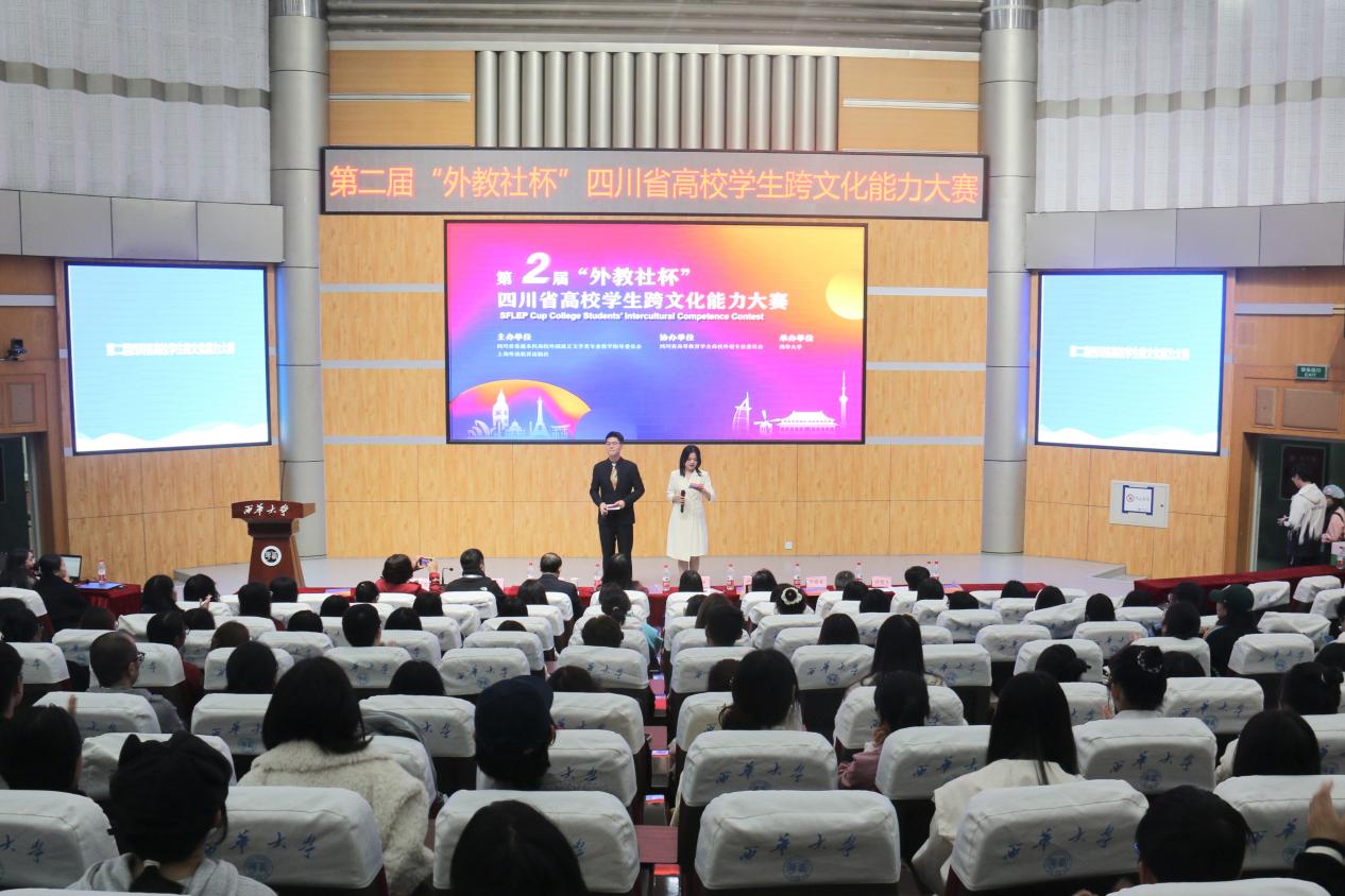 11月11日,第二届“外教社杯”四川省高校学生跨文化能力大赛决赛在西华大学举行。本次比赛由四川省普通本科高校外国语言文学类专业教学指导委员会和上海外语教育出版社主办,四川高等教育学会高校外语专业委员会协办,西华大学承办,旨在加强文明互鉴、推动中外交流,促进国际传播,来自四川的十所高校参赛队伍共同参与。