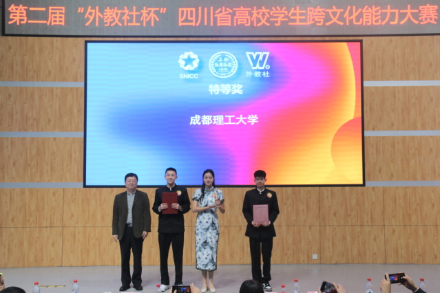 颁奖典礼上,评委代表段峰教授,承办院校代表、西华大学教务处副处长刘雪梅,上海外语教育出版社张宏副总编分别为此次比赛致辞。他们表示,跨文化大赛的目的就是理解与求同存异,而跨文化能力大赛就是致力于培养一大批具有跨文化能力的国际化人才,为当今世界格局下的国际文化交流传播作出贡献。