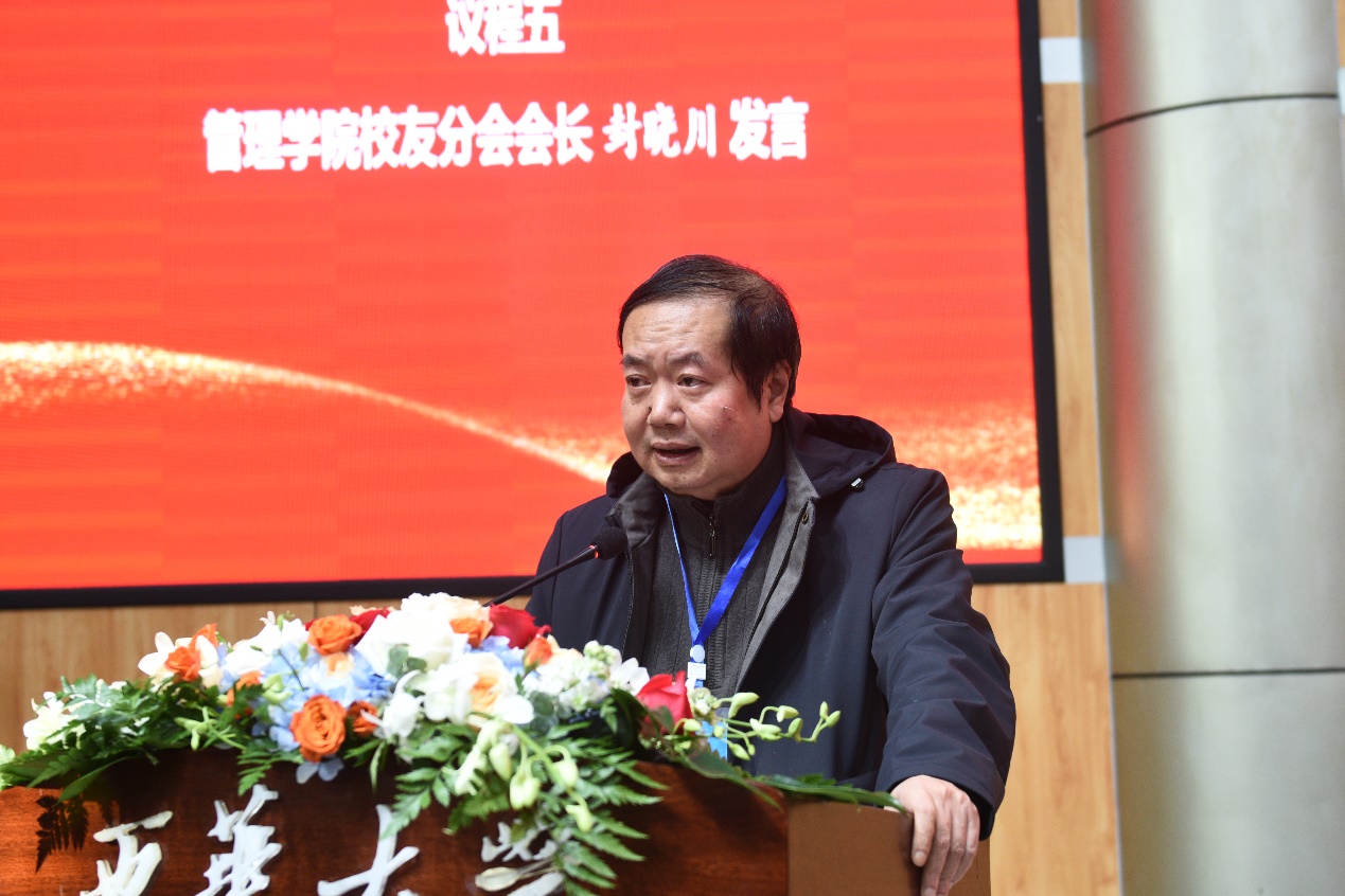 管理学院校友分会会长封晓川表达了对自己对学院的感激之情,“学院的培养,不仅让我们在职业生涯中取得了成绩,更让我们拥有了一份责任和使命,去回报母校,去影响社会。”他表示,校友分会是全体校友共同的事业,也是联络感情、分享资源、互助合作的共同平台。通过这个平台,校友们将更好地凝结和发挥优势,迸发力量。