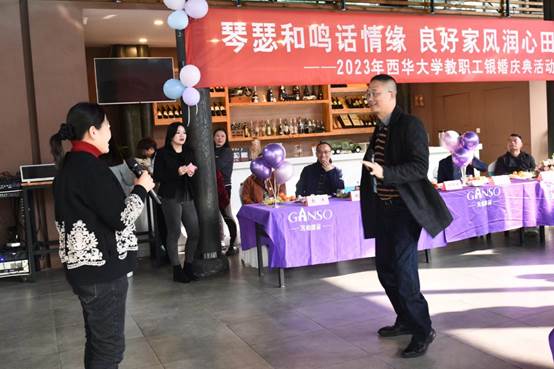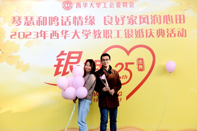 为深入贯彻落实习近平总书记关于家风建设的重要论述,纪念相濡以沫的25载芳华岁月,促进教职工事业家庭双丰收,11月23日下午,校工会在梦桐泉举行2023年教职工银婚庆典活动,伉俪们欢聚一堂,共同庆祝这一美好时刻,校工会常务副主席王大清、副主席蓝进及校工会工作人员参加了此次活动,见证银婚夫妇们的甜蜜与幸福,活动由外国语学院教师罗雨虹主持。