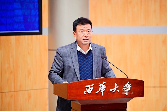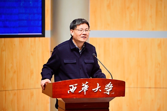 12月2日上午9点,新时代高校思政课公众形象塑造研讨会开幕式在西华大学郫都校区四教报告厅举行。四川省教育厅一级巡视员胡卫锋,四川省委宣传部理论处处长李先波,西华大学党委副书记张力出席会议并致辞。