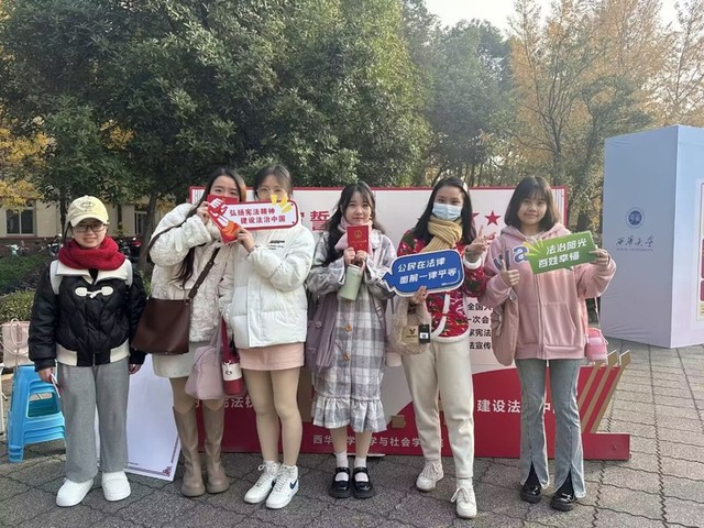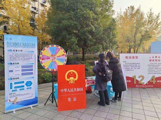 学校积极创新参与方式,线上线下齐发力,推动宪法宣传教育走深走实。12月4日至12月8日,学校在明德广场积极开展“宪启民,法兴邦”线下宪法宣传教育活动。通过法律基本常识竞答、诵读宪法章节条款、宣传法律案件,潜移默化带动学生学习宪法、理解宪法、掌握宪法并运用宪法,不断帮助学生形成办事依法、遇事找法、解决问题用法、化解矛盾靠法的良好习惯。同时,学校通过学校网络主页、西华易班、微信等主流渠道发布宪法宣传教育文章,不断浓厚宪法教育氛围,扎实推进宪法学习宣传教育进网络、进头脑,把宪法教育融入校园文化建设。