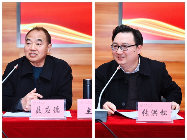 四川大学马克思主义学院常务副院长张洪松(右)、西华师范大学政治与行政学院教授聂应德(左)