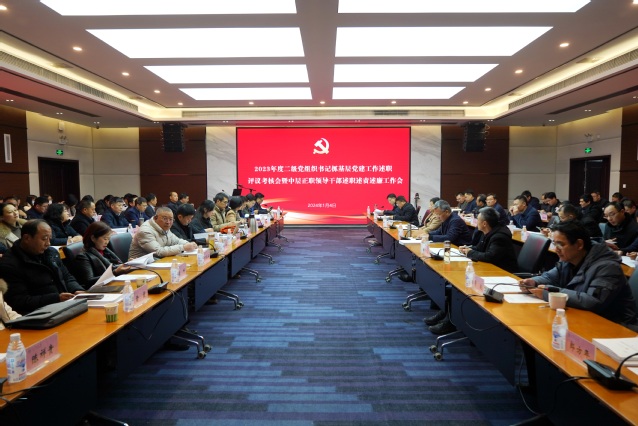 1月4日下午,我校2023年度二级党组织书记抓基层党建述职评议考核暨中层正职领导干部述职述责述廉工作会在办公楼101会议室召开。全体在校校领导、校党委委员、各党(工)委(党总支)书记、学院院长、机关业务单位主要负责人参会。