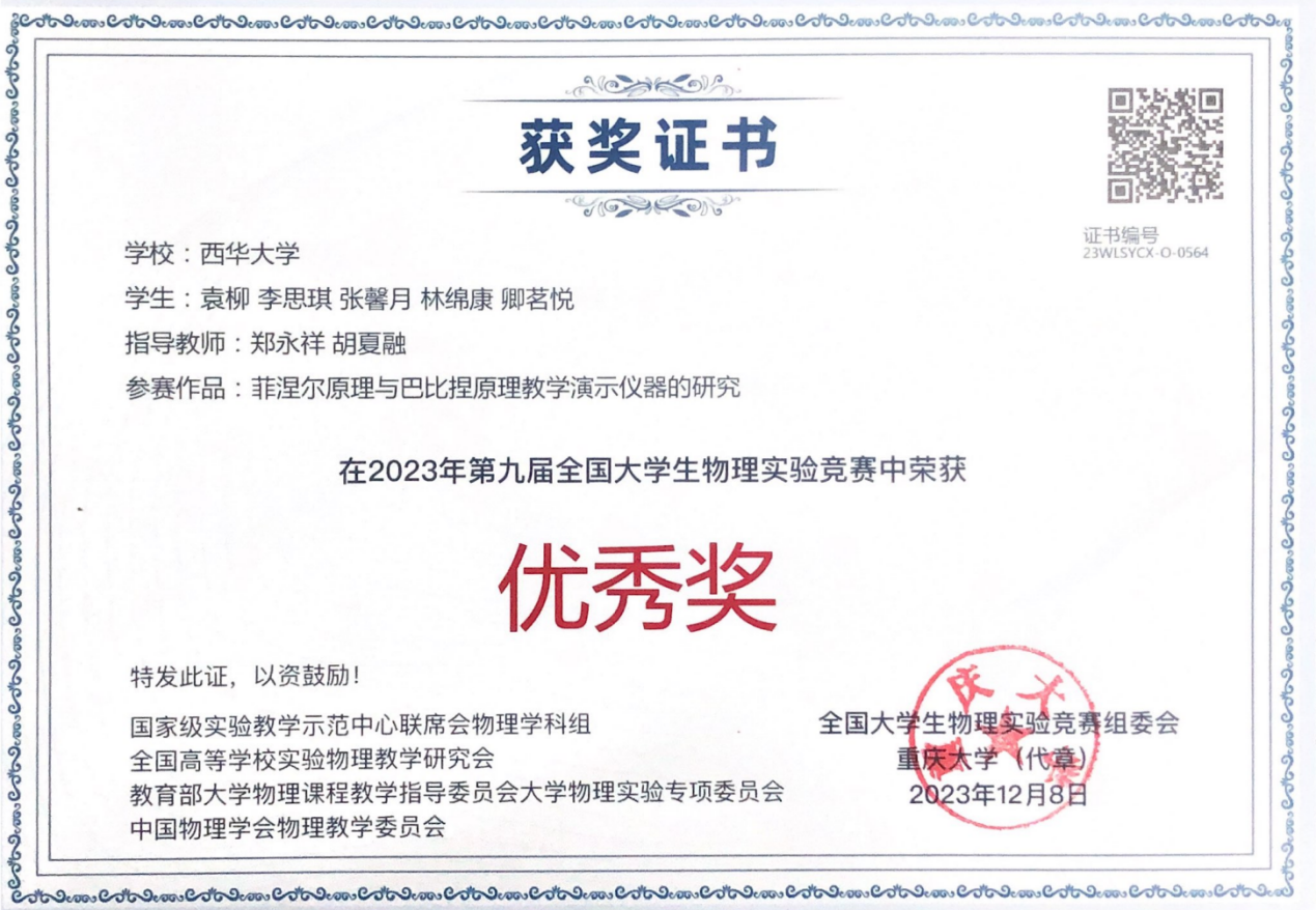 近日,第九届全国大学生物理实验竞赛(创新)落下帷幕。我校理学院参赛队伍经过长达半年的充分准备,在范志祥、吉驭嫔、徐竞跃、郑永祥、胡俊山、丁长春等老师的指导下,获得国赛二等奖1项,三等奖1项,优秀奖2项。