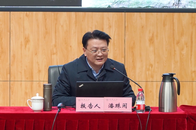 我校文学与新闻传播学院院长潘殊闲教授以“传承巴蜀文化 建设文化强省 勇担时代使命”为题,围绕源远流长、璀璨夺目的巴蜀文化,四川推动中华优秀传统文化与巴蜀文化传承发展的实践,西华大学推动中华优秀传统文化和巴蜀文化传承发展的机遇与挑战三个方面,进行了系统阐述和深入解读。潘教授在报告中全面系统解读了巴蜀文化,强调了巴蜀文化在中华文化中的重要地位。他指出,巴蜀文化具有多元性和互动性,在长期的互动中彼此的渗透和融合,形成了独具特色的文化体系。报告梳理了四川在推动中华优秀传统文化与巴蜀文化传承发展方面所做的实践,以巴蜀文化的传承弘扬为视角,介绍了建设文化强省的有关思考和建议。报告还从办学定位与规模、学科专业、海外合作平台、学科研究平台等方面,分析了学校在推动中华优秀传统文化和巴蜀文化传承发展上的优势,同时也指出了面临的挑战与困难,希望秉承“知难而进、自强不息”的西华精神,进一步激活全校教职员工干事创业的积极性、主动性、创新力和创造力,在中华民族现代文明的建设征程上,勇担时代使命,作出无愧于这个时代的贡献。