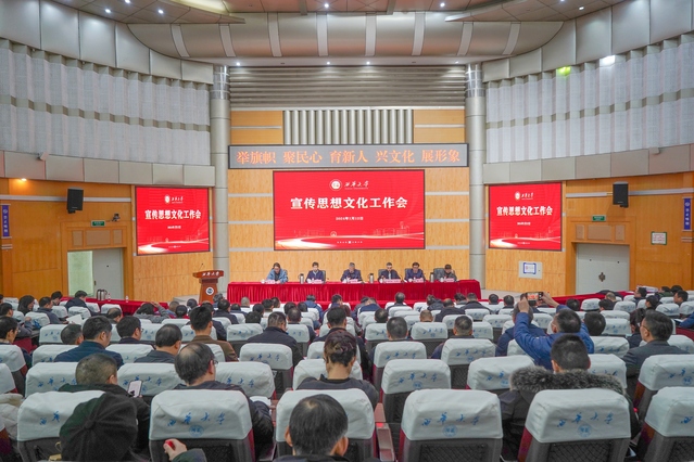校党委副书记张力以“高举旗帜守正创新 齐心协力铸魂育人 努力开创学校宣传思想文化工作新局面”为题,作学校宣传思想文化工作会主题报告。报告总结了学校近年来宣传思想文化工作取得的成绩,分析了面临的挑战和存在的不足,并介绍了下一步的工作思路和举措。报告指出,近年来,学校党委按照“高举旗帜、围绕中心、服务大局、改革创新”的总要求,坚持党的领导,推进宣传思想文化工作实现协同联动;坚持守正创新,始终保持思想政治工作的生机和活力;坚持系统推进,全校宣传思想文化工作取得可喜成绩,为学校改革发展稳定提供了强有力的思想保证、舆论支持和文化条件。报告还分析了新形势下学校宣传思想文化工作面临的诸多挑战,从思想认识、课程教学、思政工作、文化建设四个方面指出了存在的不足,要求进一步增强紧迫感和责任感,主动担当作为,不断提高工作能力和水平。张力指出,未来要聚焦立德树人根本任务,以全面落实“时代新人铸魂工程”十大专项行动为总抓手,坚持目标导向、问题导向和需求导向,深化思政工作改革创新,坚持德智体美劳“五育”并举,着力培养担当民族复兴大任的时代新人。