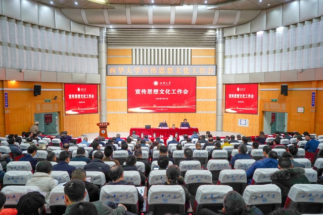 新形势、新任务,新气象、新作为。为深入学习领会习近平文化思想,全面落实全国、全省宣传思想文化工作会议精神,推进“时代新人铸魂工程”,1 月 12 日,学校在四教报告厅召开宣传思想文化工作会。会议紧扣立德树人根本任务,对当前和今后一个时期学校宣传思想文化工作进行部署,推进全校宣传思想文化工作高质量发展,为培养时代新人提供思想滋养、精神支撑和文化力量。会议分两个阶段进行,第一阶段为专家辅导报告和相关工作交流,由校党委副书记张力主持,第二阶段为大会工作报告,由校长李秋实主持。