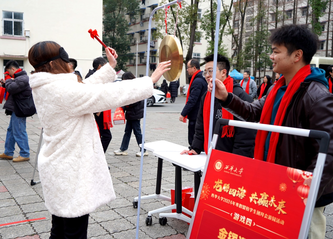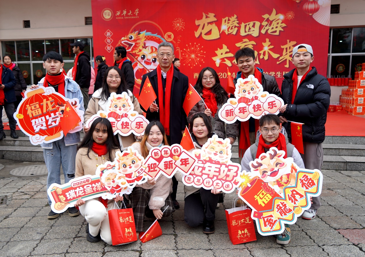 玉兔辞旧,龙腾贺新。2月6日上午,西华大学学生一食堂内外张灯结彩,喜气洋洋,“龙腾虎跃,共赢未来”西华大学2024年寒假留校学生团拜会在热闹祥和喜庆的氛围中举行。校党委书记刘树根,党委副书记张力,副校长刘小兵、郎方年、邵永波,学校相关职能部门负责人、关工委及各学院分管学生工作主要负责人及200余名留校学生欢聚一堂,畅叙收获、共迎新春。团拜会由党委学生工作部副部长陈雁主持。