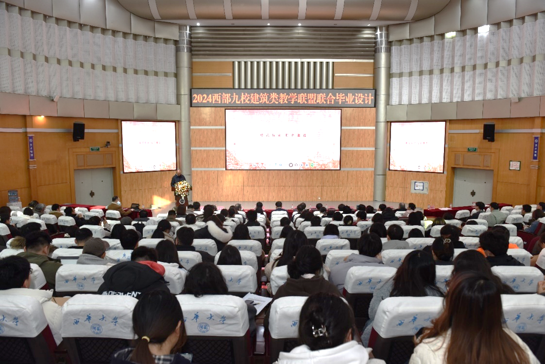 2月29日上午,2024年西部九校建筑类教学联盟联合毕业设计在西华大学四教报告厅举行。此次会议由西部九校建筑类教学联盟主办,西华大学承办,得到《规划师》杂志、成都传媒文化投资有限公司、成都东郊记忆园区运营管理有限公司以及四川省建筑师学会的大力支持。长安大学、西安交通大学、四川大学、西北工业大学、西北大学、云南大学、昆明理工大学、新疆大学、兰州理工大学、兰州交通大学以及西华大学200余名师生参加会议。会议由西华大学建筑与土木工程学院党委书记顾鸿飞主持。