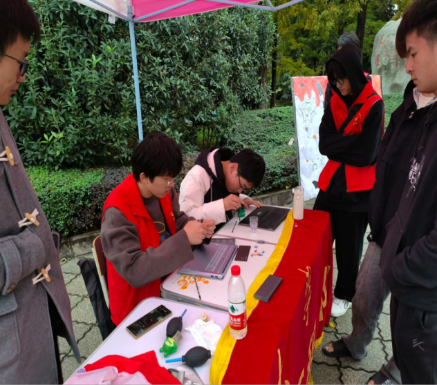 计算机与软件工程学院青年志愿者服务队利用学科特色,协助专业清灰技术人员为同学们提供电脑清灰服务,以实际行动践行了“雷锋精神”。
