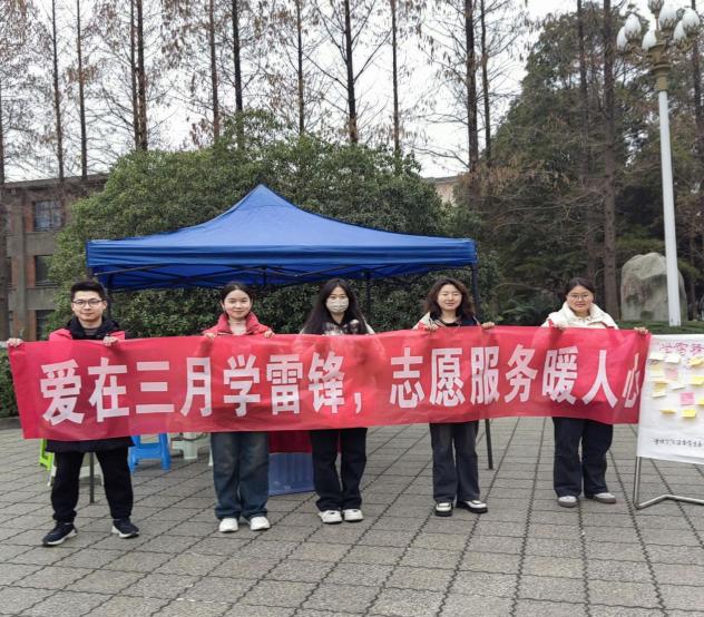 法学与社会学学院青年志愿者服务队组织带领志愿者在西华大学明德广场开展“雷锋精神心永存,志愿服务情常在”志愿服务活动,引导同学们以自愿选择的形式进行答题和游戏,以此潜移默化地宣传雷锋精神,希望同学们能借此机会进一步了解雷锋月文化。