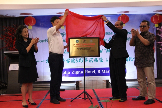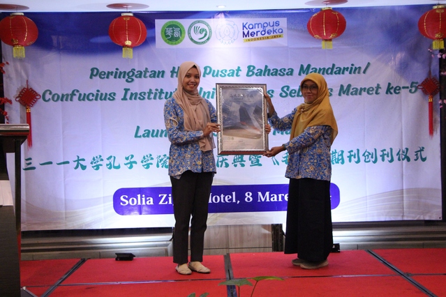 揭牌仪式后,孔子学院的又一崭新成果——新期刊《毛笔》举行了创刊仪式,孔子学院中方院长樊洁介绍了《毛笔》的创立初衷和发展愿景。据悉,《毛笔》是继《Mandarinable》之后推出的第二本学术期刊,关注语言、文学、文化、教育、历史和新闻学等领域的最新研究和前沿动态,期待为促进中印尼学术交流带来新气象。