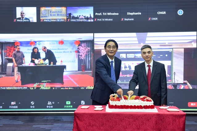 随后,在梭罗和成都会场的嘉宾们分别通过切印尼传统黄米饭和5周年生日蛋糕的形式,共同分享三一一大学孔子学院成立五周年的喜悦。现场还举行了西华大学、三一一大学、四川锂源新材料有限公司和印尼锂源新能源有限公司“产学研校企国际合作谅解备忘录”签约仪式暨“产学研校企合作基地”揭牌仪式。