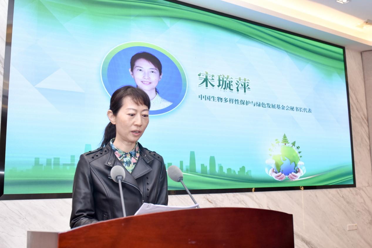 中国生物多样性保护与绿色发展基金会助理秘书长宋璇萍代表中国绿发会向所有参与单位和工作同志表示感谢,向全国青年学生参赛表示热烈欢迎。她强调,大学生是社会发展的生力军和后备力量,应该积极践行低碳环保生活和低碳经济,为美丽中国的建设贡献力量。