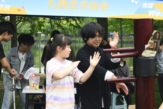 活动现场,同学们兴致盎然,于各种传统手工制作技艺体验摊位前驻足流连。服章之华汉服社与书画协会提供了团扇绘制、簪花欣赏、油纸伞绘制等项目,过往的师生参与其中,体验感满满。走至茶文化协会,热情的社团学子邀请同学们品茶,带大家感受中国传统茶文化的浓厚意蕴。在太极风协会的摊位,几位同学激动地展示了一套“陈氏精要十八式”太极拳。协会负责同学说:“练习太极,不仅能够增强身体素质,修身养性,更能加深同学们对中华传统文化的理解,欢迎同学们过来体验。”