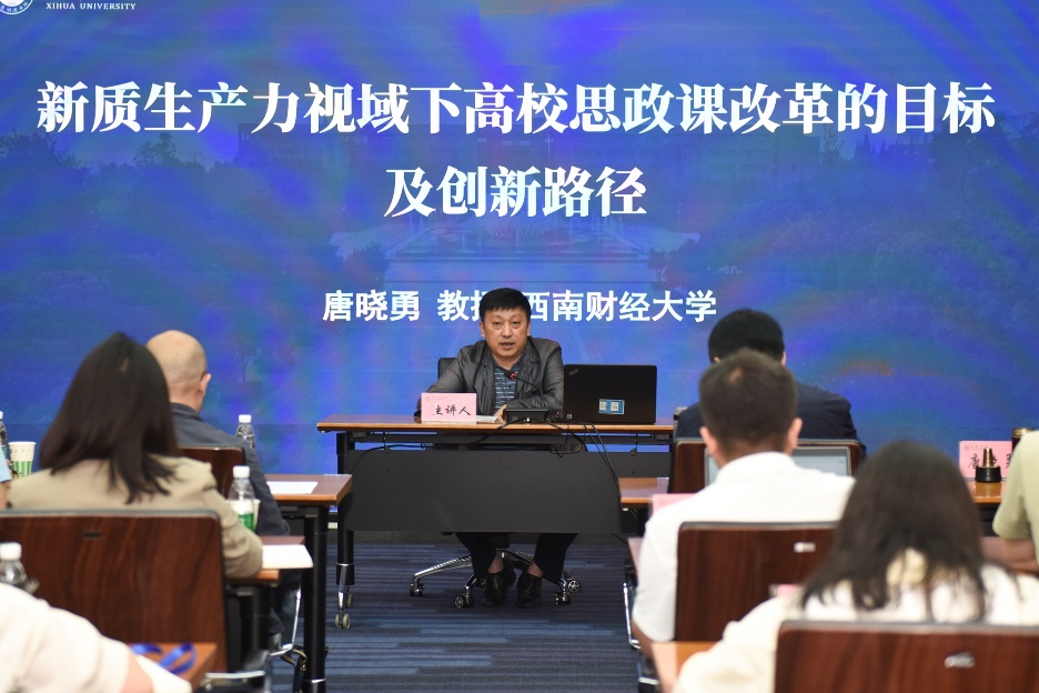 西南财经大学唐晓勇教授以“新质生产力视域下高校思政课改革的目标及创新路径”为题展开分享。唐晓勇教授强调,首先是深刻领悟新质生产力在思想政治教育创新发展及思政课改革的表现;其次从生产力传统要素中的劳动者、劳动资料及劳动对象对思政课教师、数字技术、教育对象展开思考;再者,从政理、学理、情理、源理、法理、哲理六个维度,明确思政课改革的目标及思政课如何把道理讲深、讲透、讲活。最后,唐晓勇教授以虚拟仿真技术运用于思政课提质增效,重点探讨了高校思政课改革的实践路径创新。