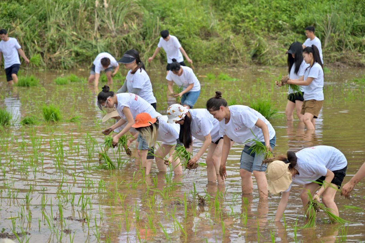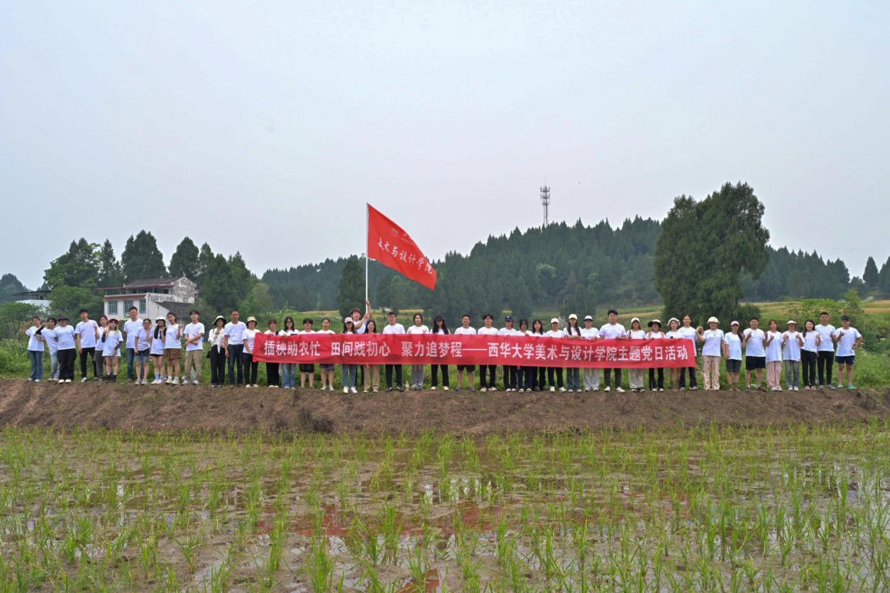 5月8日,美术与设计学院为进一步增强师生党员战斗力、凝聚力,涵养学生学农、知农、爱农、强农、兴农的理念,在劳动教育中传承红色基因,以实际行动践行初心使命,美术与设计学院组织师生党员、入党积极分子代表70余人赴学校定点帮扶点南充市嘉陵区下院山村开展“插秧助农忙、田间践初心,聚力追梦程”活动,把党课搬到田埂头,深入田间地头开展劳动实践,亦耕亦读,让师生感受乡情、感受劳作的快乐。