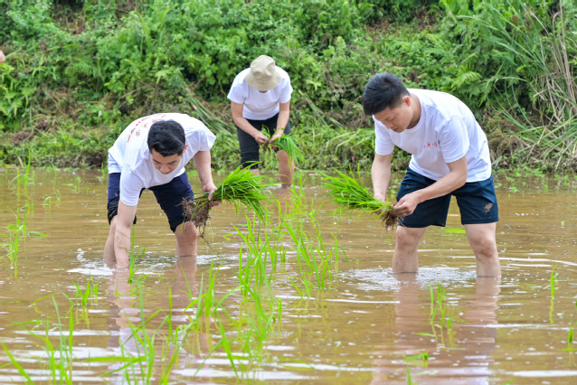 2021级视觉传达设计专业本科学生党员蒋婷婷说:“以前没经历过这方面的实践锻炼,老师们带着我们一起插秧农耕,不仅让大家亲身体验了农耕的艰辛与乐趣,也让我们对农业生产和农村生活有了更加深刻的认识。看着自己劳作的这块秧田,内心满满的成就感。我一定要用自己所学的专业知识和技能,支持农业科技发展,为乡村丰富的农副产品设计赋能。”