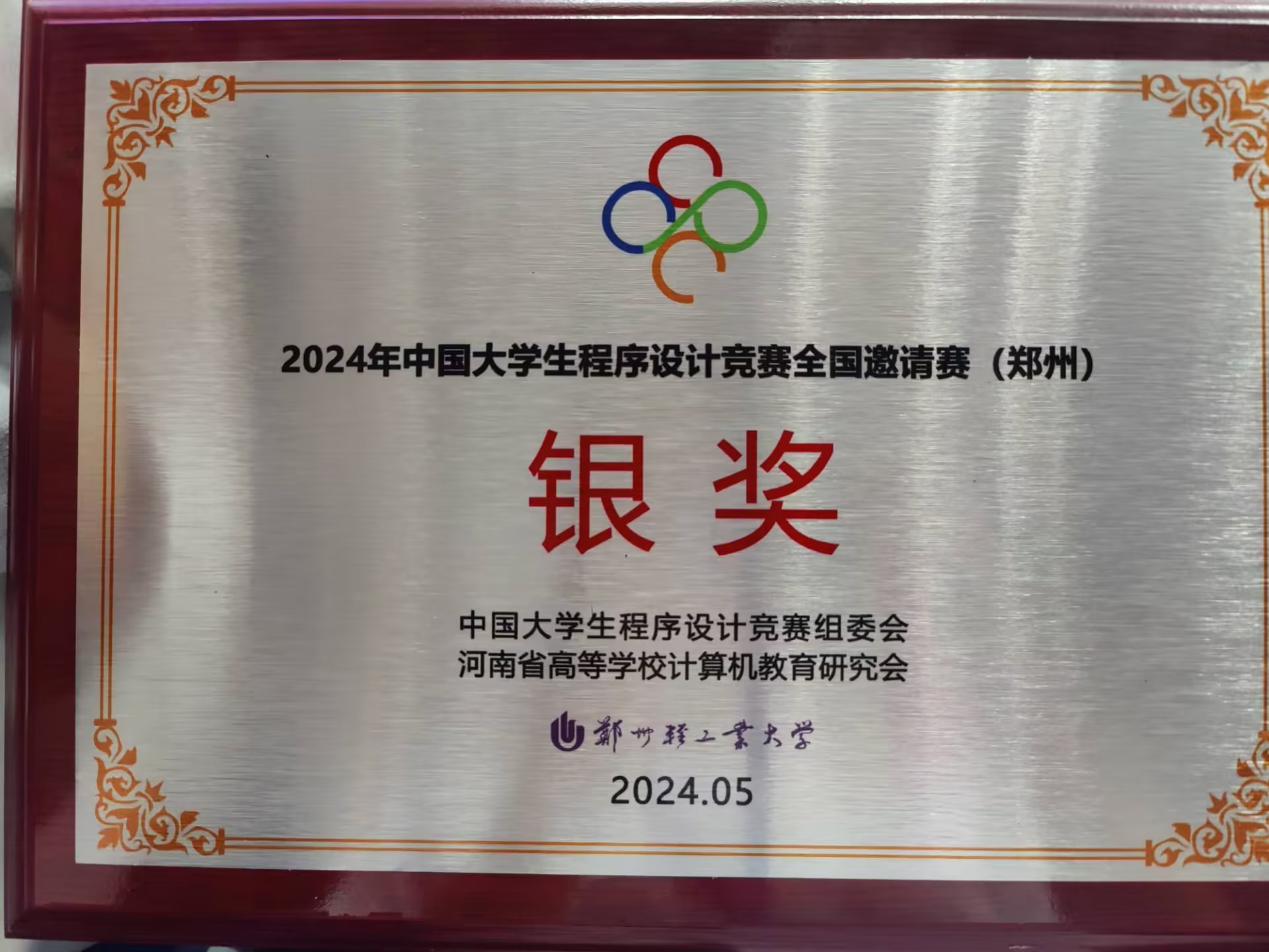 5月11-12日,2024年中国大学生程序设计竞赛全国邀请赛(郑州)暨第六届 CCPC 河南省大学生程序设计竞赛在郑州轻工业大学举行,由我校ACM创新实验室的李绍杰、石浩楠和赵熙三位同学组成的西华大学代表队参加了本次比赛并获得银奖。