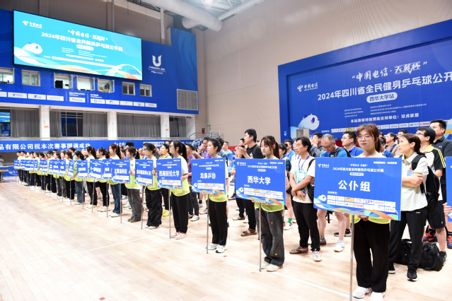 5月18日,“中国电信·天翼杯”2024年四川省全民健身乒乓球公开赛西华大学站在学校体育馆盛大开幕。本次赛事吸引了来自全省的21支参赛队伍,比赛将在5月18日至19日两天内激烈展开。四川省体育局副局长朱明,奥运冠军、四川省乒乓球协会副主席、西华大学体育学院教授陈龙灿共同为比赛开球。