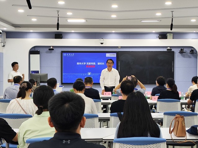副校长费凌,教育部高等学校大学物理课程教学指导委员会委员、西南地区工作委员会主任朱建华,西南交通大学物理学院《大学物理》国家级一流专业负责人吴平,西华大学教务处处长蒋珍菊、理学院院长王玉周出席本次比赛开幕式。此次比赛由理学院副院长李会东主持。