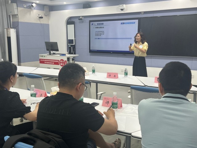 比赛过程中,来自电子科技大学、西南交通大学、西华大学、成都理工大学等四川省内12所高校的青年教师依次登台,围绕抽取到的实验题目展开讲解。评委老师们认真聆听,并提出问题,与参赛选手进行深入交流。
