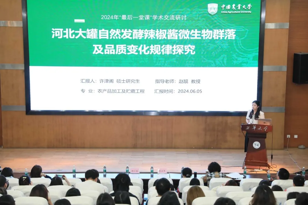 随后,多位专家学者和研究生带来了精彩纷呈的报告。林洪斌副教授分享了关于发酵蚕豆瓣中生物活性肽的鉴定及作用机制的研究成果,为蚕豆瓣的开发利用提供了新思路。赵靓教授则深入探讨了辣椒加工技术的研究进展,展示了其在辣椒加工领域的创新实践。