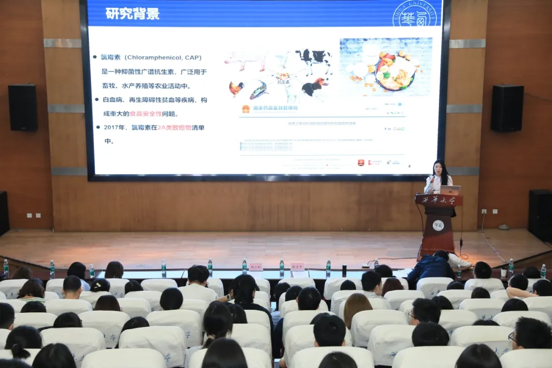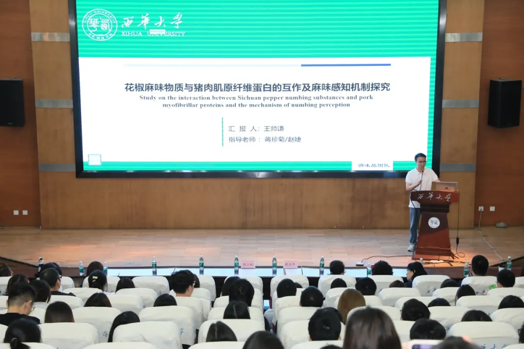 西华大学和中国农业大学的研究生杨佳,许津阁、王帅谦、李开鑫,分别就纳米材料生物传感器、辣椒酱微生物群落、花椒麻味物质与猪肉蛋白互作以及豌豆蛋白肠道粘附机制等课题进行了深入报告和交流。