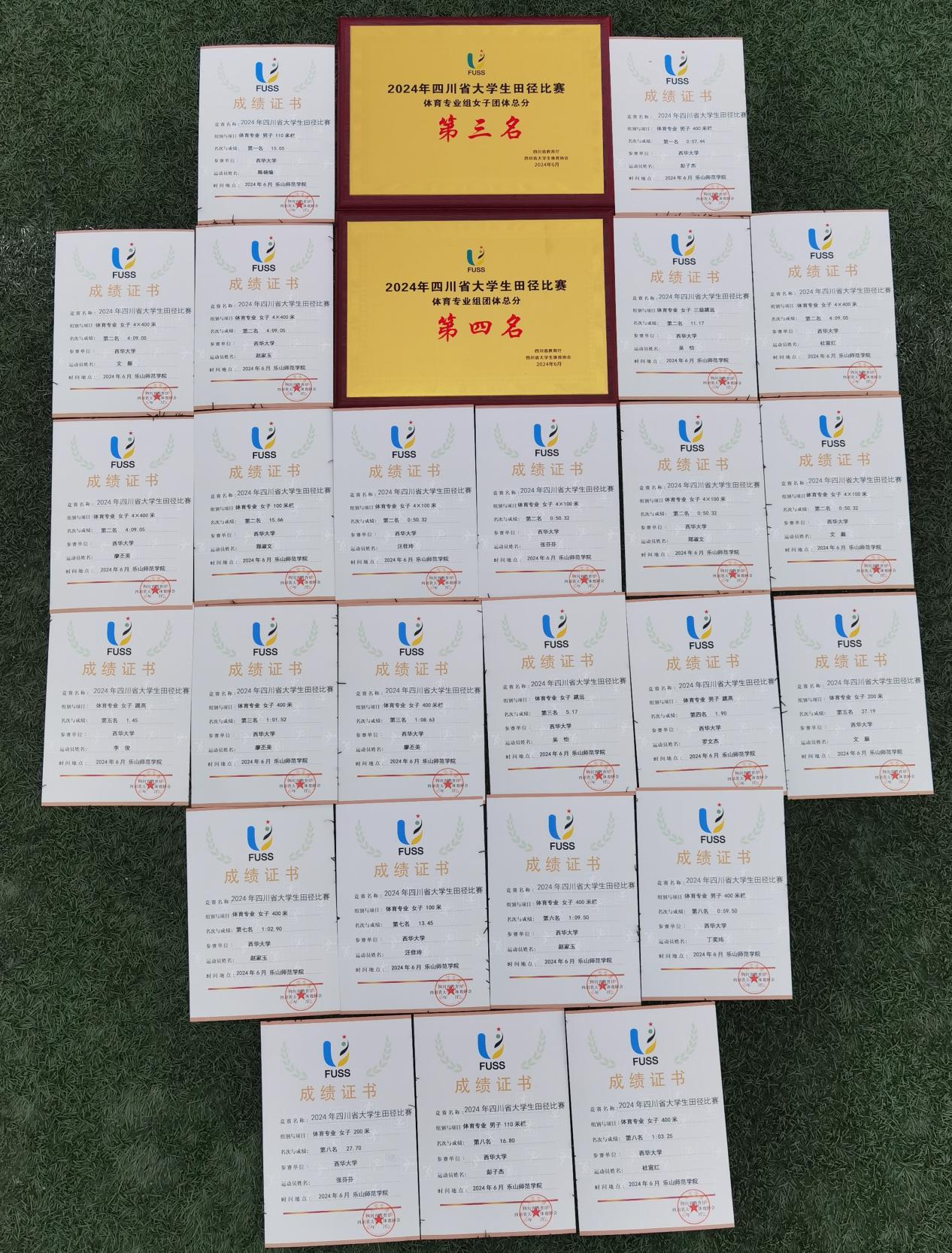 本次比赛共设立高水平组、体育专业组、校园组、高职高专专业组、高职高专校园组5个组别,涵盖了男女长短跑、跨栏、接力、跳高、跳远、三级跳远、铅球等共计14个项目。西华大学田径队的27名队员在体育学院副院长唐觅、田径队教练侯金成、刘翊军的带领下参加了体育专业组和校园组的角逐。经过5天的拼搏,最终,我校斩获了2金4银3铜,在8个项目中打破了学校纪录,并获体育专业组女子团体第三名和体育专业组团体第四名的好成绩。