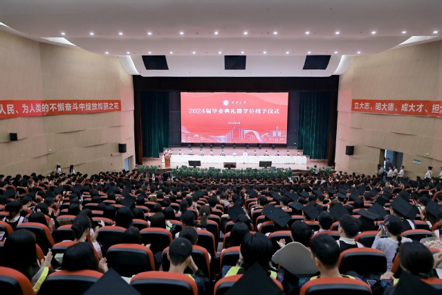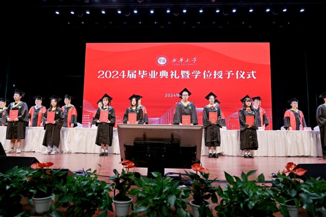 沱江河畔,观斗山旁;挺膺担当,奋楫笃行。6月25日上午,西华大学2024届学生毕业典礼暨学位授予仪式以线上线下相结合的方式,在郫都校区临江苑田径场、宜宾校区大会堂同步举行。