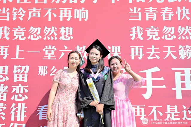 庄严而激昂的国歌声响起,2024届毕业生身着学位服,怀着对未来的憧憬与期待,共同迎来求学生涯中的难忘时刻。